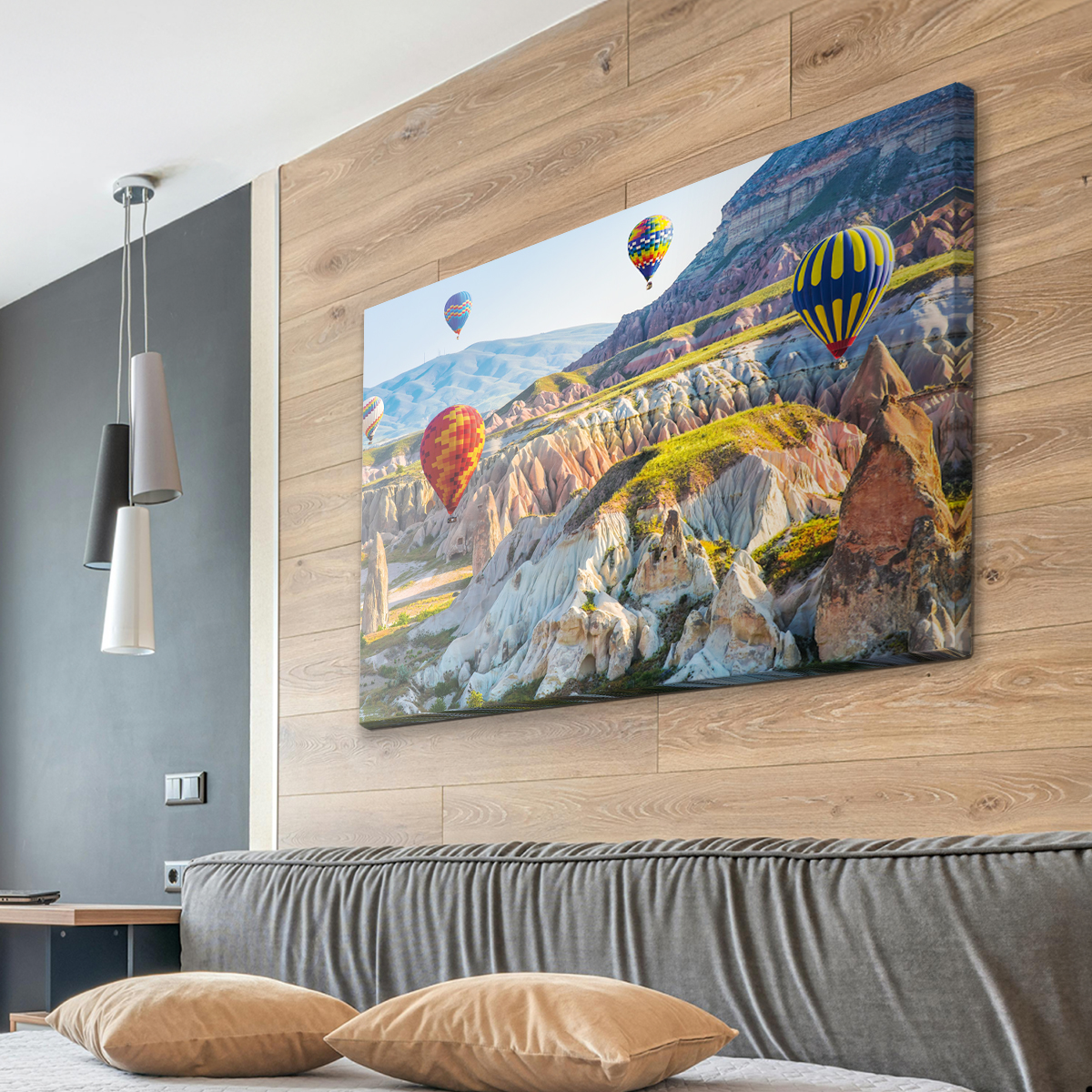 Akustikbild PURE mit „Ballons über Kappadokien II., Türkei“-Motiv für die Wand – das Wellness-Erlebnis für Ihre Augen und Ohren