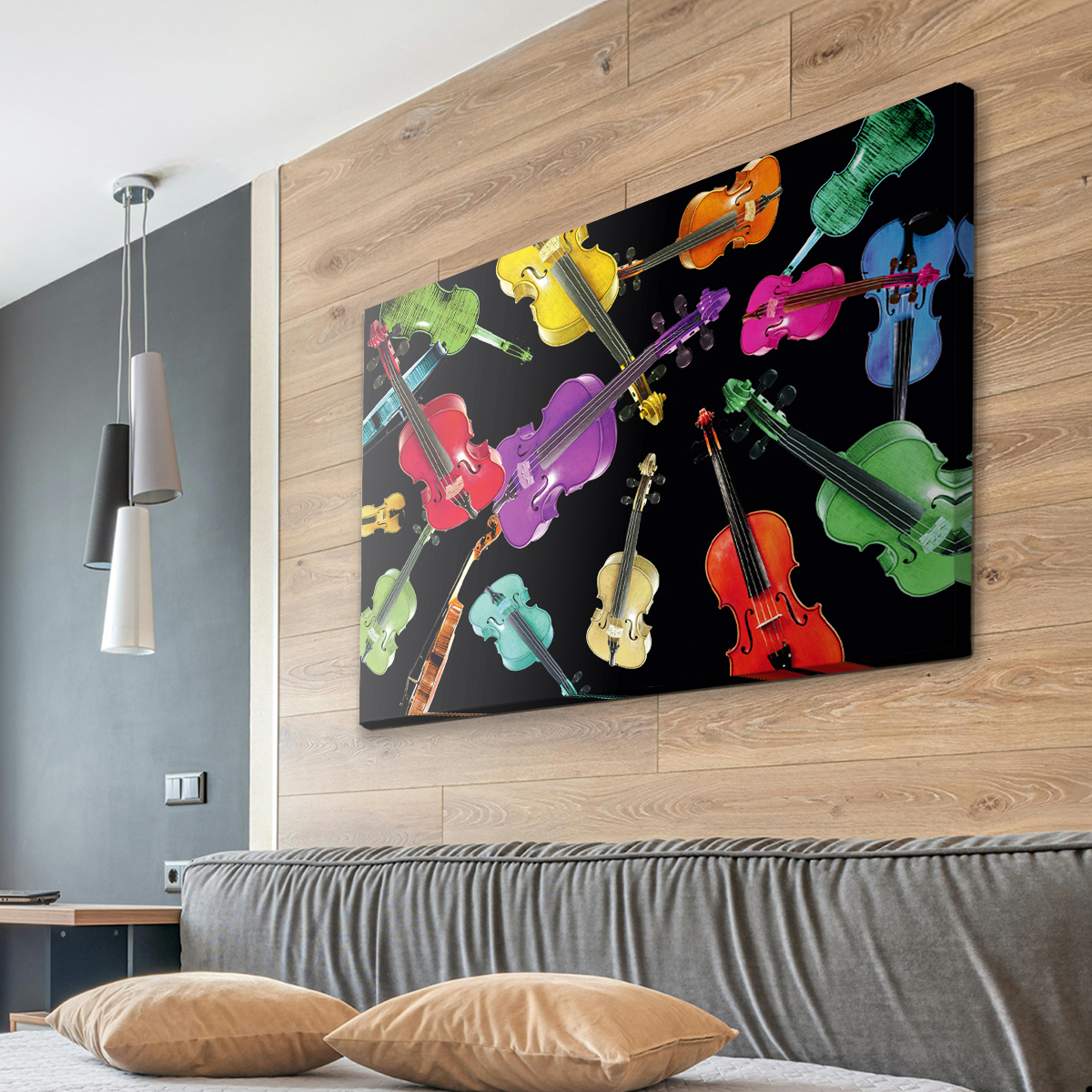 Für Verliebte hängt der Himmel bekanntlich voller Geigen. Eine überraschende, fröhliche und farbenfrohe Variante bietet dieses Motiv, passend auch zu den Einzelbildern „My new Violine“.