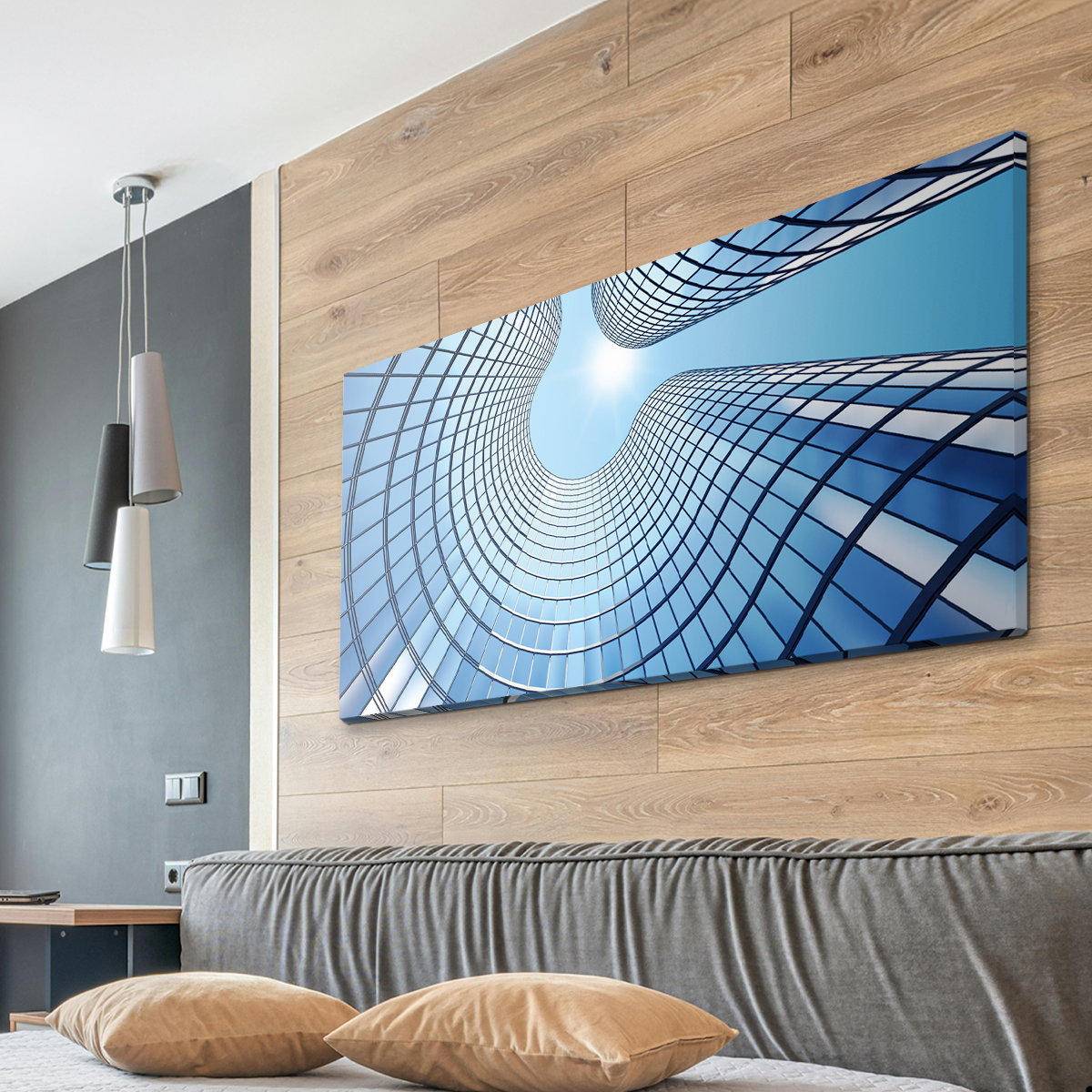 • Rahmenlose Optik durch Bespannung auf Echtholzrahmen mit fortlaufendem Motiv an den Kanten