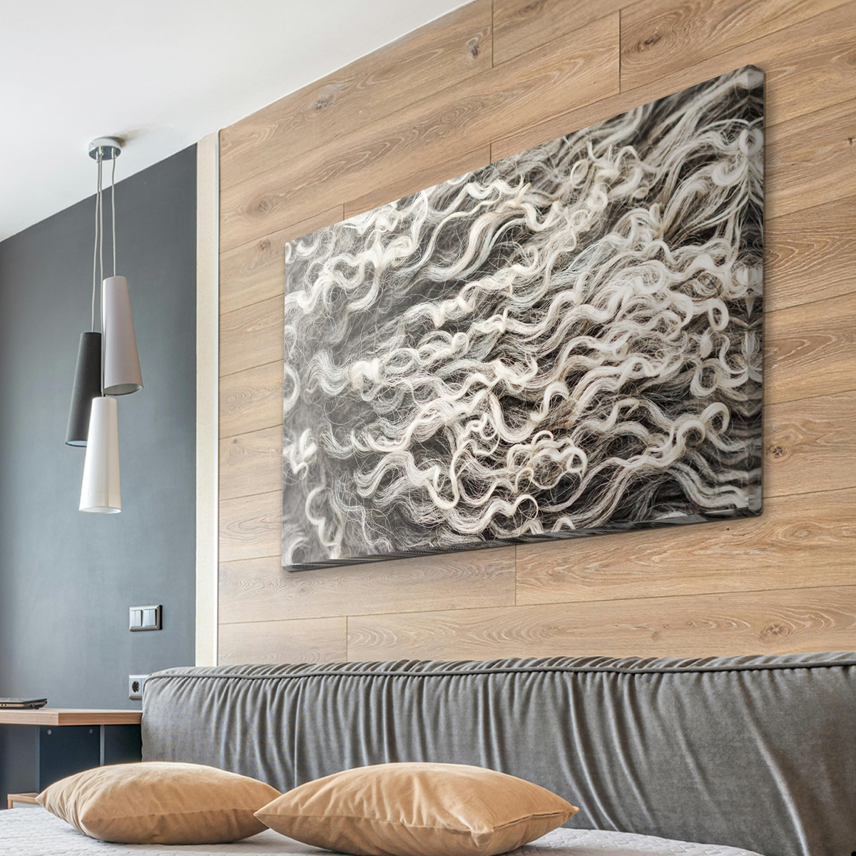 Akustikbild PURE mit „Schafwolle natur“-Motiv für die Wand – das Wellness-Erlebnis für Ihre Augen und Ohren