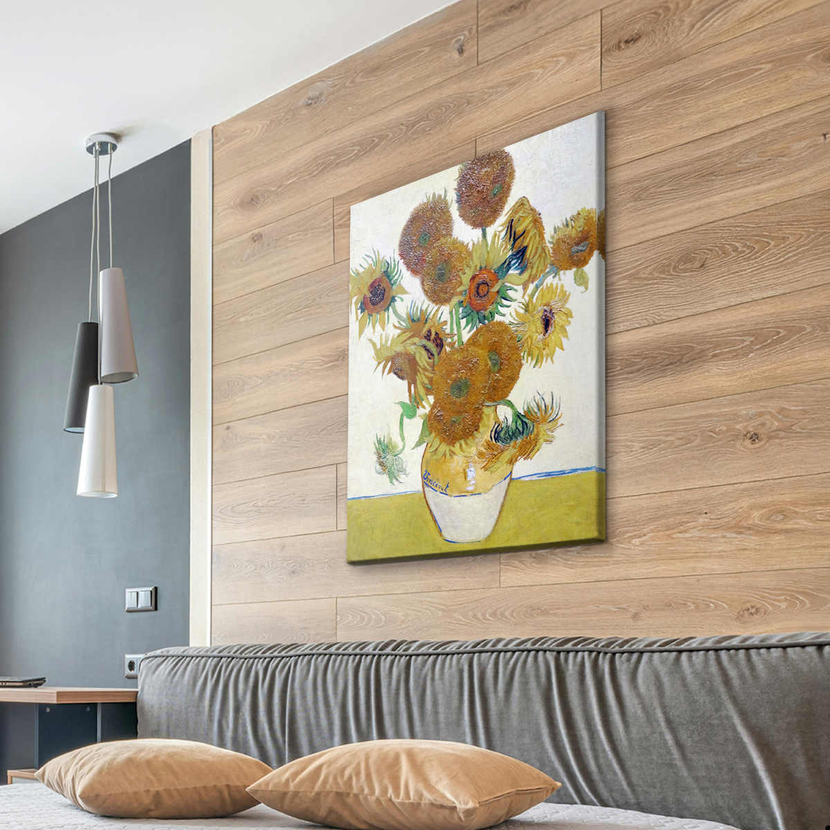 Vincent van Gogh schuf das Gemälde „Sonnenblumen“ 1888. Heute wird das Gemälde in der Galerie der Neuen Pinakothek, München ausgestellt – einen Nachdruck auf hochwertigen Stoff bieten wir Ihnen als Akustikbild PURE an.
